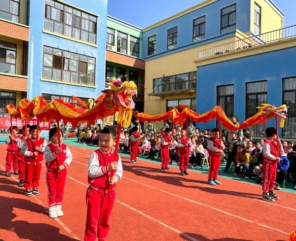 節日當天大班的小朋友特地給大家帶來了精彩的舞龍表演。瞧!在教師的帶領下,寶貝們揮動著手中的龍,奔跑跳躍,用龍之舞迎接希望,帶來勃勃生機和無限活力!