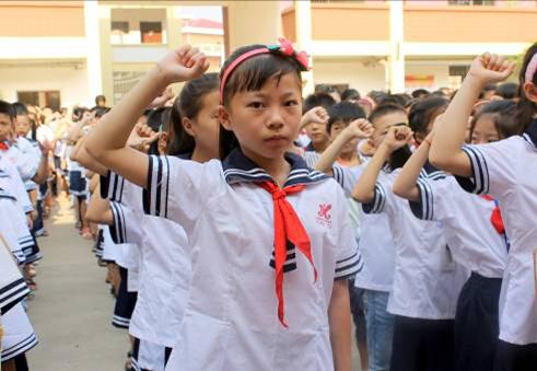 最后,全體學(xué)生在老師的帶領(lǐng)下莊嚴(yán)宣誓:在新的學(xué)期里“愛國守法、明禮誠信、遵守公德、尊敬師長(zhǎng)、團(tuán)結(jié)同學(xué)、勤奮學(xué)習(xí)、快樂生活、全面發(fā)展!”