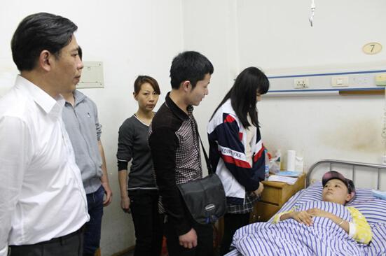 祝老師跟隨學校領導一同在醫院看望患病學生