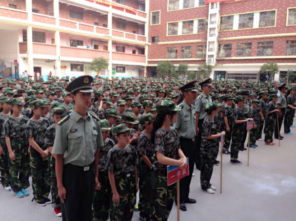 隨后,所有學生在教官們的帶領下奔赴各個訓練點,操場上到處可見英姿颯爽的身影,“立正、稍息、向右看齊……”一聲聲洪亮而清晰的口號聲不時傳入耳中,現外(象湖校區)2016級初一新生軍訓在火辣辣的太陽下便如火如荼地開始了……