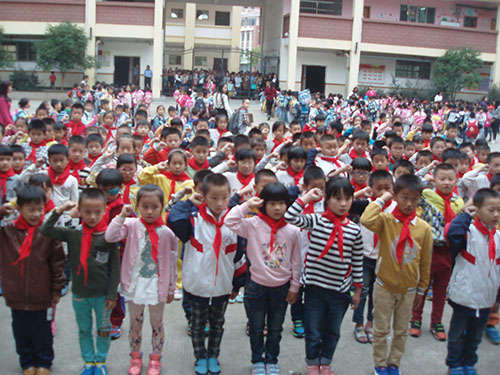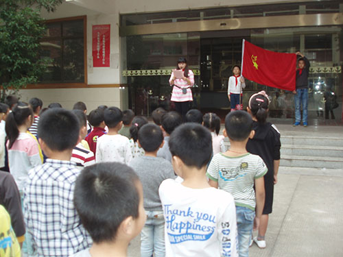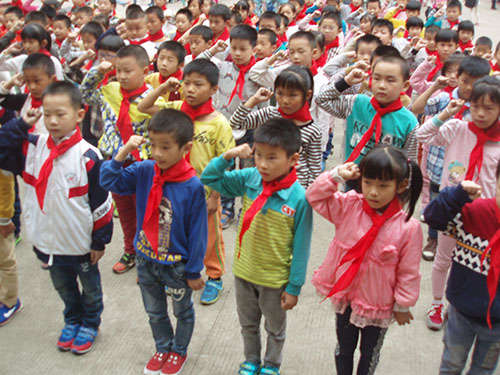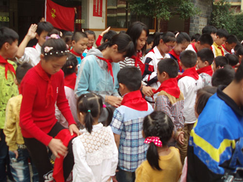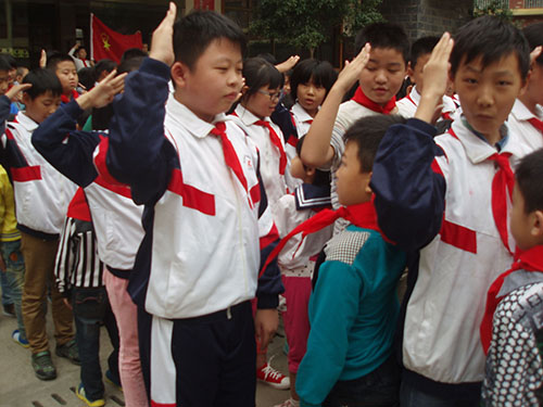 儀式上,首先,老隊(duì)員們鄭重地為新隊(duì)員系上鮮艷的紅領(lǐng)巾,互敬隊(duì)禮。面對隊(duì)旗,新隊(duì)員舉起右拳,莊嚴(yán)宣誓志愿加入中國少年先鋒隊(duì),并高喊先鋒隊(duì)呼號“準(zhǔn)備著,為共產(chǎn)主義事業(yè)而奮斗……”。隨后,大隊(duì)輔導(dǎo)員重溫了少先隊(duì)的發(fā)展歷史,向新隊(duì)員提出了希望和要求,勉勵他們爭做一名優(yōu)秀的少先隊(duì)員,嚴(yán)格規(guī)范自己的行為,努力學(xué)習(xí),團(tuán)結(jié)協(xié)作。最后,新隊(duì)員們紛紛表示,要從現(xiàn)在做起,從身邊的點(diǎn)滴小事做起,為紅領(lǐng)巾增光添彩。