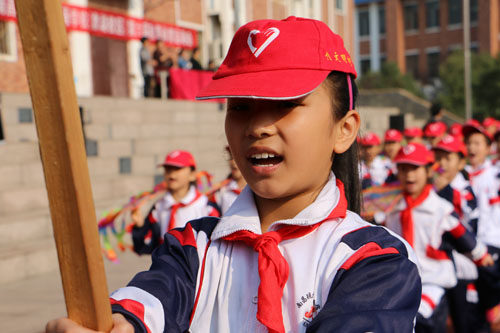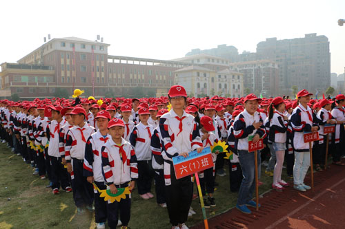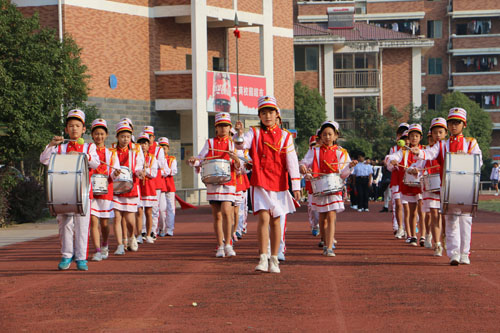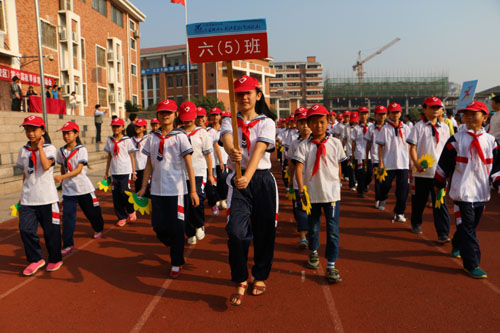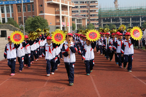 開幕式上,伴隨著《運動員進(jìn)行曲》激昂的旋律,在邁著整齊步伐的國旗護(hù)衛(wèi)隊的帶領(lǐng)下,彩旗隊和禮儀隊穿著統(tǒng)一服裝,活力十足的走過主席臺,緊隨其后的是從高年級到低年級依次入場的各班方隊,他們踏著正步,斗志昂揚,口號響亮,激情滿腔。