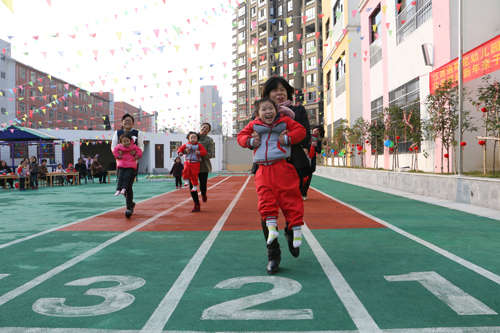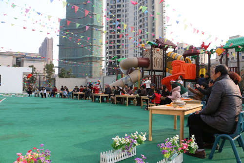 活動開場,全體幼兒、家長手牽手入場圍城一個大圓圈共跳舞蹈“鈴兒響叮當(dāng)”;緊接著,園長和家長代表各自發(fā)言來表達對幼兒園節(jié)日的祝福;發(fā)言結(jié)束后,幼兒和教師一起表演,孩子們將自己學(xué)到的舞蹈全方位的展示給爸爸媽媽們;家長和孩子們一起參加的親子游戲?qū)⒂變簣@的快樂氣氛推向又一個高潮,親子游戲精彩紛呈,“剝桔子”、“搶椅子”、“蹲蹲樂”、“大腳踩小腳”等親子游戲贏得了大人們孩童般的天真笑聲,孩子因開心而樂,家長因滿意而笑,快樂匯聚成幸福的海洋,讓大家深深感受到江西迪斯尼幼兒園朝陽園這個大家庭的溫暖。