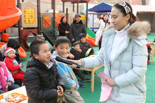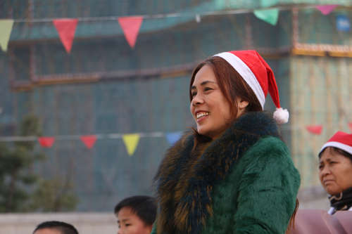 園外寒風(fēng)襲人,園內(nèi)春意融融,五彩的氣球、飄飛的彩旗、繽紛多彩的圣誕樹,將活動的現(xiàn)場渲染得異常火爆,每個人的臉上都寫滿了歡樂和喜悅。