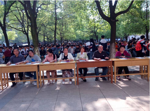 下午3點50分,比賽在女生宿舍樓前的小操場隆重舉行。首先,我們的楊校長用英語發表了講話,現場的氣氛一下子被帶動起來。參賽的選手共40人,個個都激情四射。小學、初中、高中各班均有學生積極參賽。本次比賽,英語俱樂部還邀請了楊校長、傅校長及初高中英語教師擔任評委。他們專業、公平、公正的評分是選手努力比賽最好的回報。