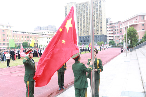 國歌奏畢,國旗飄揚。省教育廳督導專員兼學院黨委書記周瑾同志向全體師生莊嚴宣布江西省工商職業技術學院第七屆田徑運動會正式開幕。