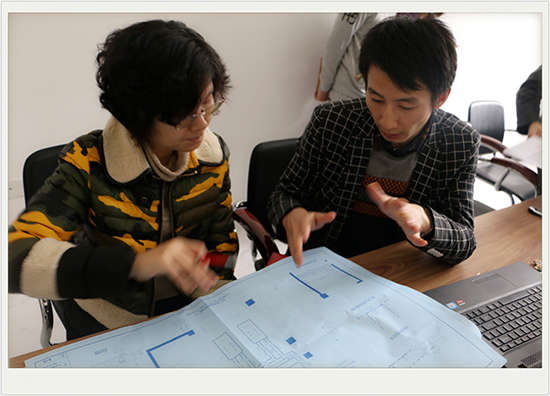 在接洽會上,沃爾瑪、大地影院的設計師根據他們的設計裝修方案,就室內裝修、改造,水電安裝等方面問題與工程部進行了具體的交流和探討。