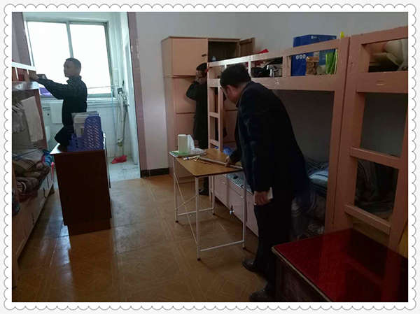 檢查中,檢查組成員與生活老師對(duì)學(xué)生宿舍每個(gè)角落進(jìn)行認(rèn)真仔細(xì)的查看,包括箱、柜、床等角落,任何有可能藏匿管制刀具、易燃易爆物品地方都不放過。