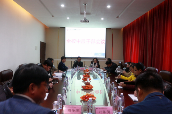 2月12日,學院在第一會議室召開了2017新學期第一次全院中層干部會議,安排部署新學期各項工作。會議由劉明初院長主持,教育督導專員、學院黨委書記周瑾出席。副院長陳偉高、曠強軍、胡國輝及全院中層干部參加。