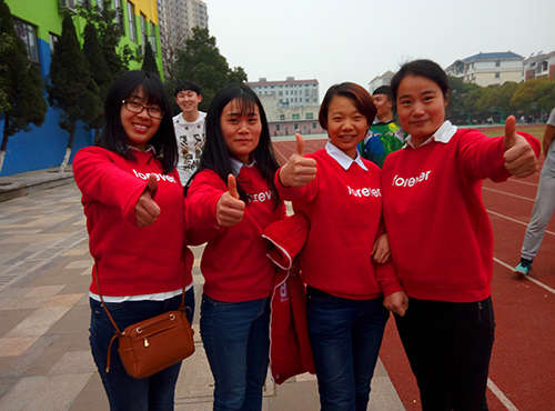 第四節課后,女教職員工們忘記了一天工作的疲勞,歡快地來到運動場,她們個個神情飽滿,躍躍欲試,在場地做熱身準備,蓄勢待發。