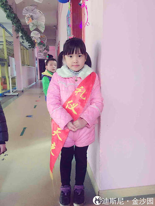最近一段時間,每天早晨,迪斯尼幼兒園·金沙園的門口總會聽到“早上好”這樣溫暖的問候,原來這是金沙園的文明禮儀小天使們開始“上班了”。她們身披紅色綢帶,面帶笑容,整齊地站在幼兒園門口。每當(dāng)有小朋友和家長走進校園,禮儀小天使們揮起右手,用稚嫩的聲音向大家問好,自己也能從情感上懂得禮儀行為的意義。