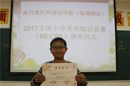 本次競賽,南昌現代外國語學校(象湖校區)經過初賽選拔,共170多名學生進入決賽。從初賽到決賽短短一個月的時間,我校20名英語老師每天利用放學后及中午休息時間,采取集中、分散、個別輔導的形式,由英語教研組長負責組織有針對性地進行輔導,老師之間經常在一起相互交流輔導方法,商討難題,并做到每天跟家長溝通與交流,讓家長配合督促孩子在家完成復習任務。功夫不負有心人,在決賽中,我們學校有九名學生分別獲得了國家級二、三等獎;有70名學生獲得市級一等獎;90多名學生獲得市級二等獎;7名教師獲得“全國優秀指導教師”光榮稱號;學校獲得了第十屆全國小學生英語競賽優秀組織獎。本次比賽獲得優異成績,是對參賽學生刻苦學習的肯定,是輔導老師辛勤指導的回報。