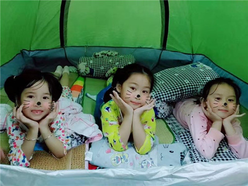 當(dāng)晚,小朋友都穿上了各自的睡衣來(lái)幼兒園,舉行了一場(chǎng)睡衣趴活動(dòng),孩子們穿著五顏六色的睡衣上演“睡衣走秀”,大家開(kāi)心地都合不攏嘴。晚上八點(diǎn)準(zhǔn)時(shí)在各班觀看老師給幼兒們準(zhǔn)備的電影,讓孩子在幼兒園里也體驗(yàn)到了電影院里的氣氛。活動(dòng)后,孩子們還品嘗到了甜甜蜜蜜的點(diǎn)心和水果。最后,所有活動(dòng)結(jié)束后,孩子們?cè)诶蠋煹闹笇?dǎo)下,紛紛搭好了自己的小帳篷,紛紛洗漱完后,都走進(jìn)一個(gè)個(gè)小帳篷進(jìn)入了夢(mèng)鄉(xiāng)。