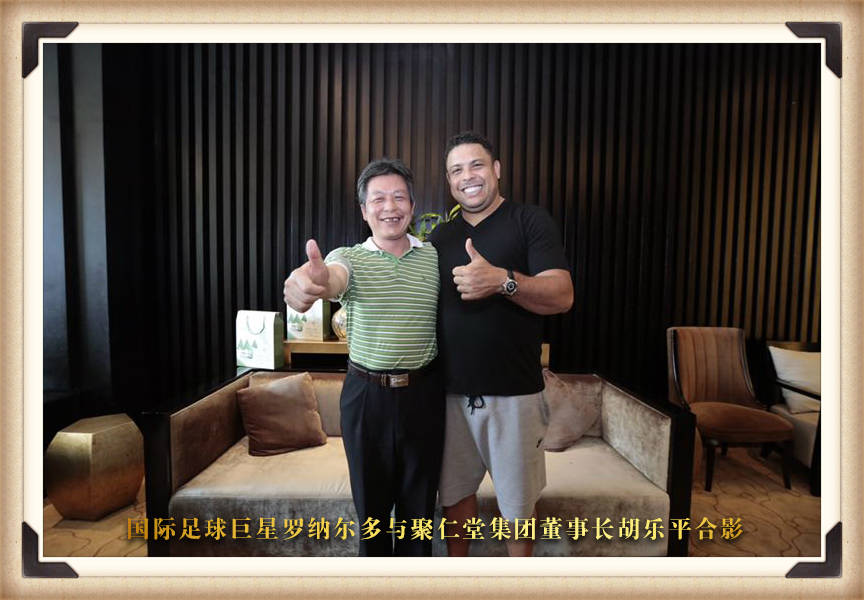 國際足球巨星羅納爾多與聚仁堂集團董事長胡樂平合影
