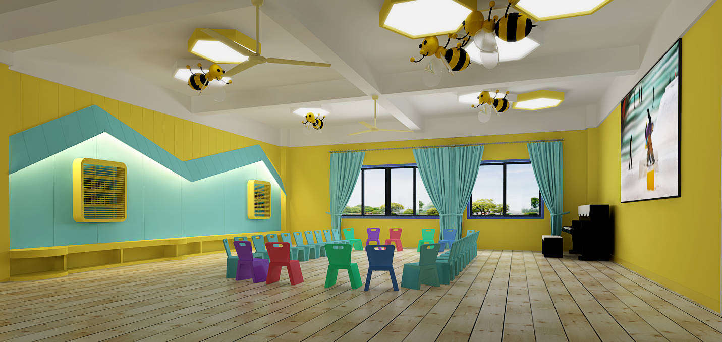 四層的一字型獨立建筑劃分出2個超大操場,將戶外游樂設施與運動場進行區域劃分,充分保證幼兒安全。園區設有繪本館、美工室、舞蹈室讓孩子各類活動空間內自由探索。教師將區角布置的別具一格讓幼兒在主題區域環境中充分釋放自我。