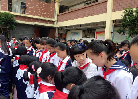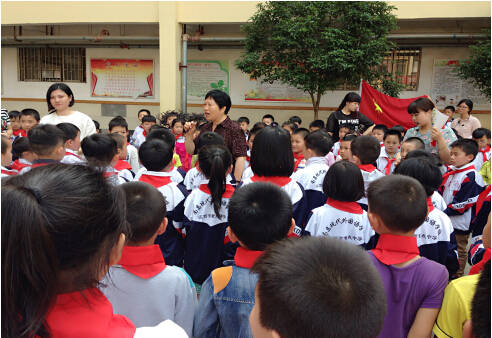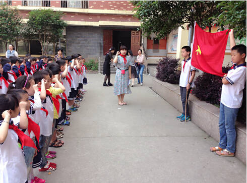 “我們是共產(chǎn)主義接班人,繼承革命先輩的光榮傳統(tǒng),愛祖國,愛人民,鮮艷的紅領(lǐng)巾飄揚(yáng)在前胸……”伴隨著嘹亮的中國少年先鋒隊(duì)隊(duì)歌,學(xué)校大隊(duì)輔導(dǎo)員謝珊珊老師宣讀了新隊(duì)員名單,六年級(jí)少先隊(duì)員向新隊(duì)員敬隊(duì)禮,為新隊(duì)員佩戴了鮮艷的紅領(lǐng)巾,183名小學(xué)生被批準(zhǔn)加入中國少年先鋒隊(duì)組織,正式成為光榮的中國少年先鋒隊(duì)隊(duì)員了;大隊(duì)輔導(dǎo)員代表全體老師們表達(dá)了對新隊(duì)員的祝福,寄語全體少先隊(duì)員養(yǎng)成良好的學(xué)習(xí)、生活習(xí)慣,為胸前的紅領(lǐng)巾增光添彩,并號(hào)召大家用自己的行動(dòng)證明自己無愧于少先隊(duì)員這個(gè)神圣的稱號(hào)。新隊(duì)員在隊(duì)旗下莊嚴(yán)宣誓、呼號(hào)——“為共產(chǎn)主義事業(yè)而奮斗,時(shí)刻準(zhǔn)備著!”