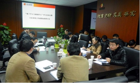 根據會議安排,集團品牌文化部借助此次集團各部門、單位文宣工作人員齊聚一堂的機會,針對集團文宣系統相關工作流程和工作標準與參會人員進行探討和學習。此次會上解讀的文宣系統工作流程及標準主要是涉及各單位的相關工作流程,如信息采集與編發流程,包括集團報編發流程、要情通報編發流程、網站信息上傳流程;企業文化建設工作管理流程,包括企業文化管理總流程、準備階段流程、診斷階段流程、規劃階段流程、實施階段流程以及品牌建設管理流程、文宣工作人員考核流程,文宣工作年終評優評先流程等文宣系統工作的六個大項、二十余各小項流程和相關工作標準,通過制定一系列的文宣系統工作流程及標準,進一步規范集團文宣系統相關工作,引導各單位文宣工作人員熟悉掌握并嚴格執行相關工作流程和標準,從而提高工作效率。