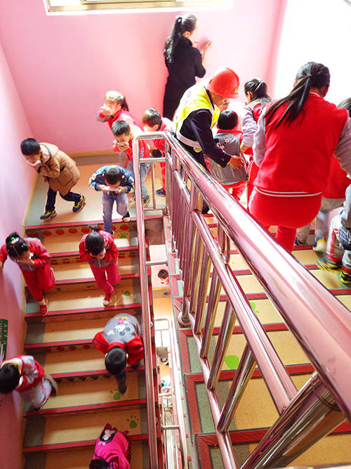 演練前,全體教職工和幼兒就象往常一樣工作和開展各種活動。中班、大班幼兒在教室觀看有關安全方面的動畫片,小班在上課。大家一概不知道演習的起火地點和時間。突然,一陣急促的警報聲,瞬間傳遍整個幼兒園,楊書正園長組織了消防疏散領導小組,讓他們隨機應變、各行其職,既有分工又有合作的緊急疏散。