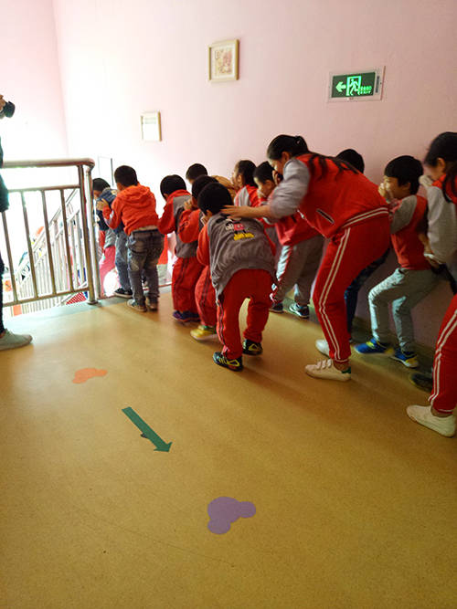 全園的幼兒在整個疏散撤離的過程中有秩序并迅速地用濕毛巾捂口鼻,彎腰靠墻而走,整個活動井然有序的把幼兒全部撤離到安全地帶,班主任清點幼兒人數后以及老師人員、保健員向組長匯報情況。10分鐘后整個消防疏散演習,按預定方案圓滿結束。