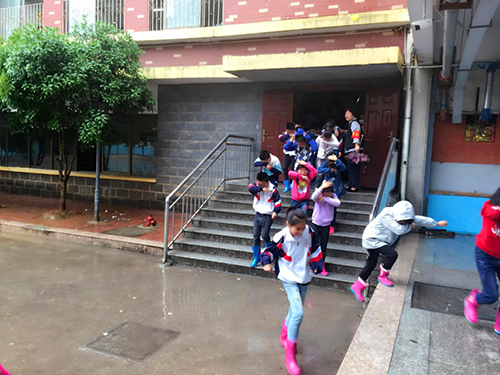 為了做好本次演習,學校專門召開會議,對演練安全人員作了安排,班主任對學生進行安全宣傳,全體同學認真學習了疏散路線、疏散要求。整個演習設置了疏散引導組,演練組織細致、嚴密。演練中為了達到真實效果,特請集團聚龍物業領導配合,動用了他們的消防人員,身穿防火服,頭戴消防面具在現場指揮。下午1:50,負責各樓層,操場安全引導的領導、老師、保安帶著紅色安全監督員袖章,快速到達指定位置,各就各位。消防演練正式開始,各位消防員迅速地引導樓內學生按照逃生演練方案設定的逃生路線,迅速而有序地撤離到指定位置。整個演練活動有序、緊湊、安全、高效。