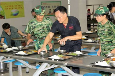軍訓期間,學校領導各班班主任和全程參與,為同學們做好各項后勤工作,學校副校長胡卓越更是親自到食堂,和老師、同學們一起為軍訓學員準備午餐,確保軍訓活動順利開展。