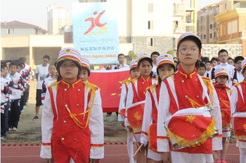 開幕式上,舉行了隆重的入場儀式。各班級運動員方陣相繼進場,氣氛緊張而又熱烈。首先入場的是學校鼓樂隊和彩旗隊。隨后,由各班運動員代表組成的方隊身著統一的服裝,邁著整齊的步伐,手舉標語,高喊口號,精神飽滿的步入會場,充分展示了“現外”學子的風采。開幕式最后,各班運動員進行了會操表演。